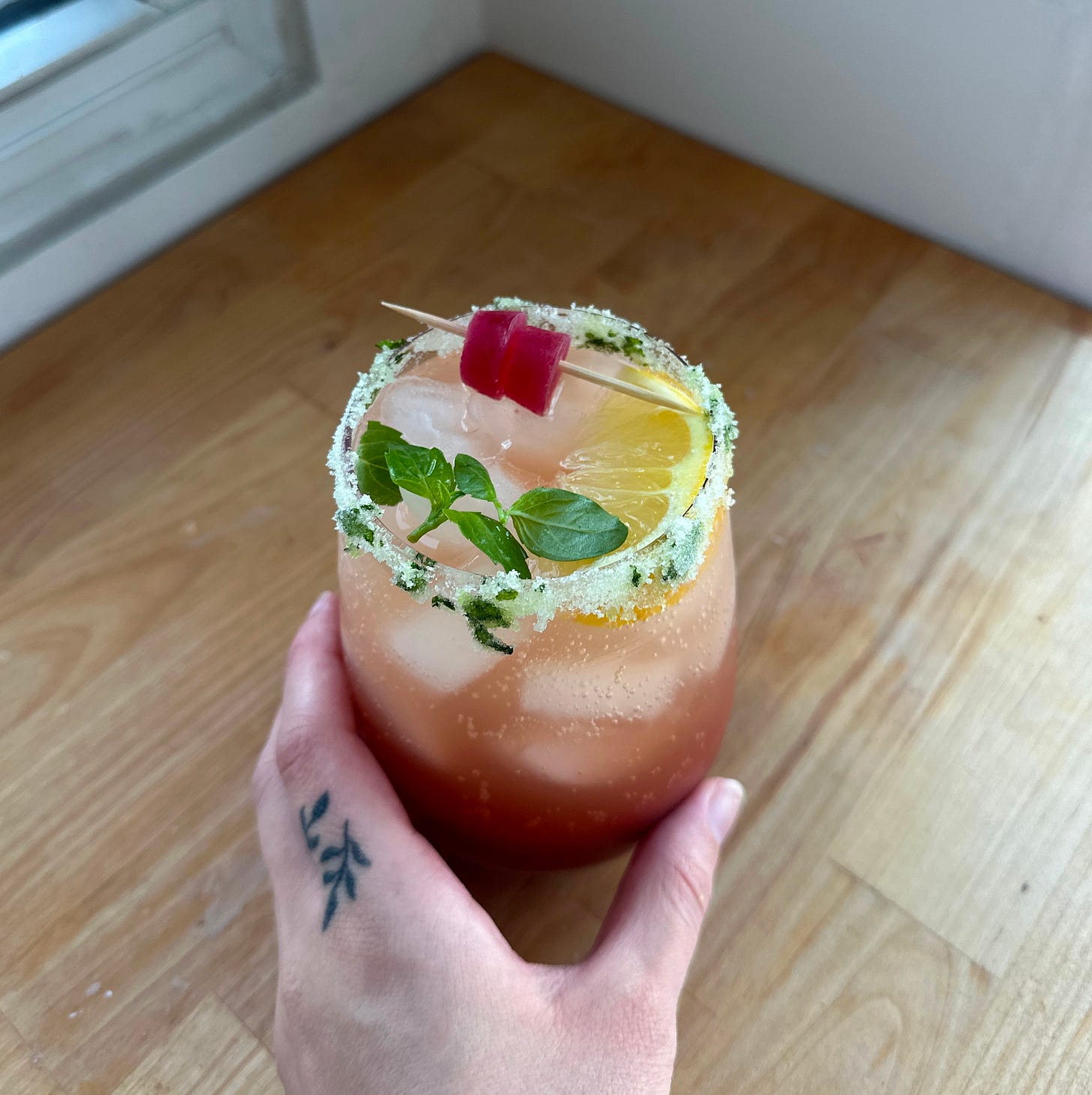 Basil and lemon give it a spring vibe, while topping it off with soda water makes for the perfect nighttime beverage.