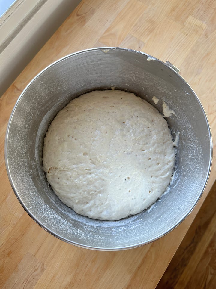 Cover the bowl with a kitchen towel and let it rise in a warm spot for 2 hours (if your house is cold, you can place it in your oven with the light on).