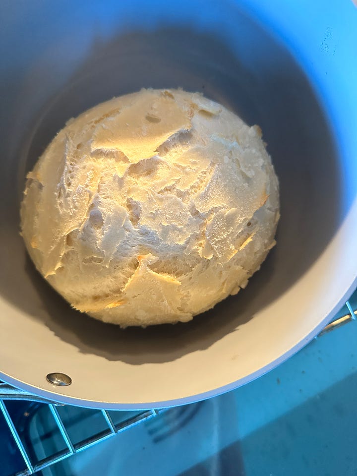 If you chose to preheat the Dutch oven, carefully remove it from the oven with oven mitts, then place the dough inside and cover with the lid. Bake for 30 minutes with the lid on, then remove the lid and bake for an additional 10-15 minutes until the crust is golden and crispy.Cool and Enjoy