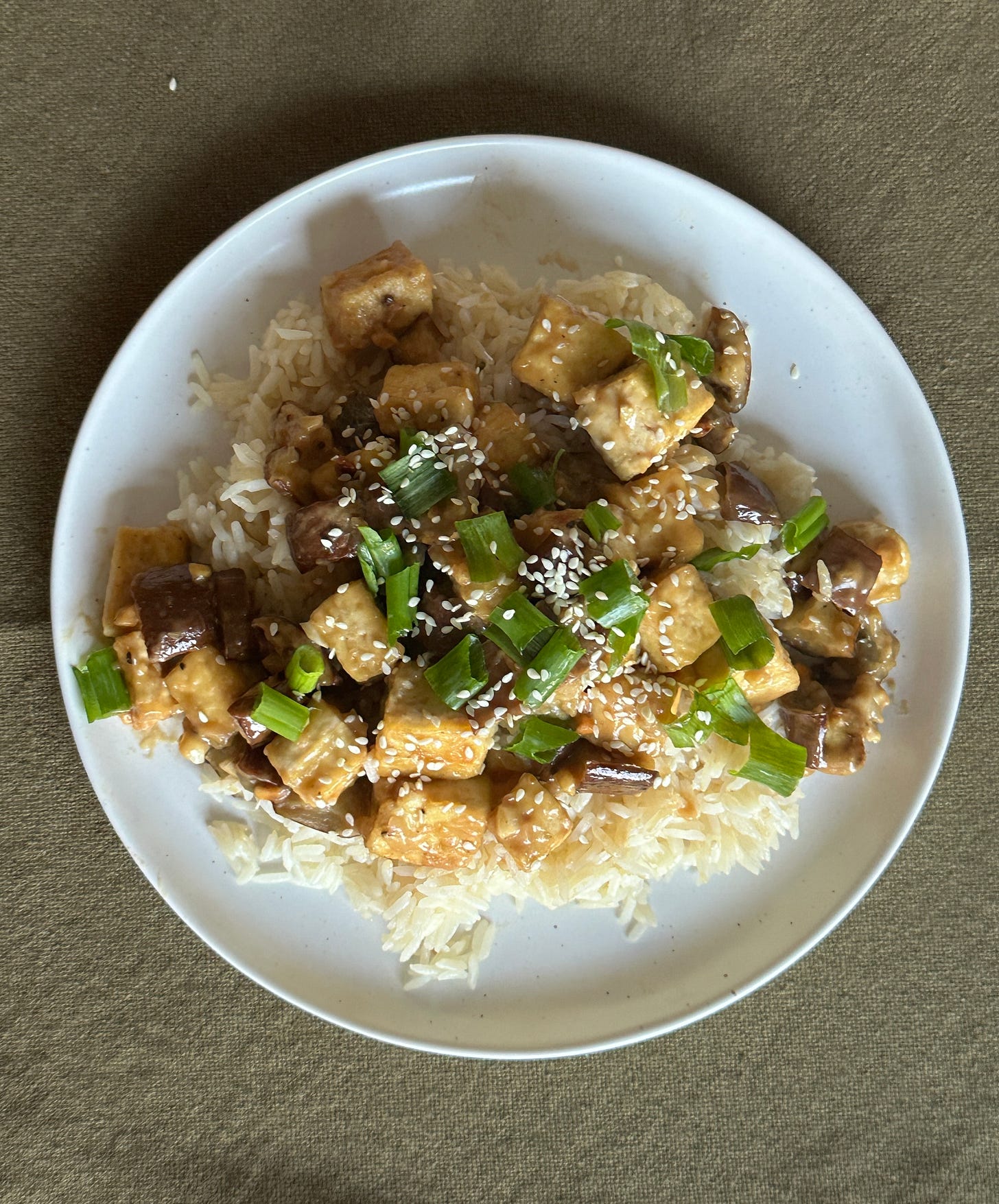 MAPLE PEANUT GLAZED CHINESE EGGPLANT & TOFU